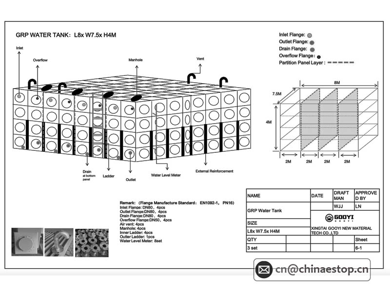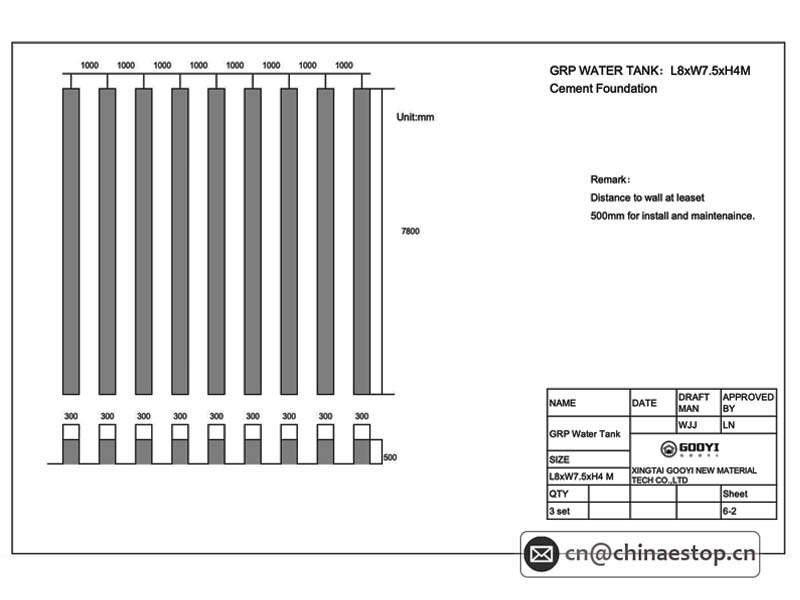 • Full set of water tank drawing include (water tank, foundation, accessories location) will be provide to customer to support installation work.